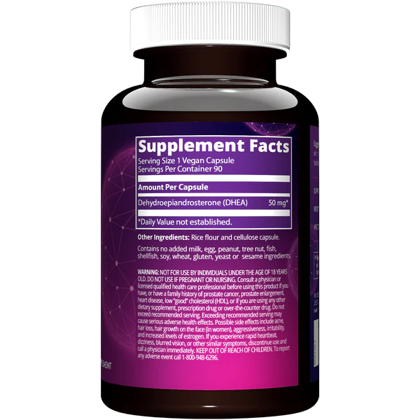 - Ingrediente Ativo: Dehidroepiandrosterona (DHEA) – 50mg por cápsula.